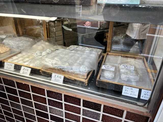 午前中の早い時間にお店の前を通りかかり、豆大福 220円×2個を入手し、自宅でいただきました。