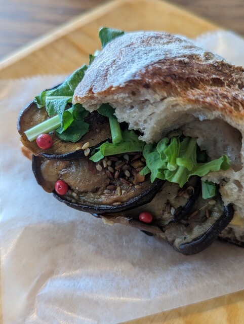 パンはもちろんだけどお野菜も美味しい!茄子好きとしては、お茄子を美味しく焼き上げてくれてありがとう✨と思いながら。パンもお茄子も良い焼色で味が濃い