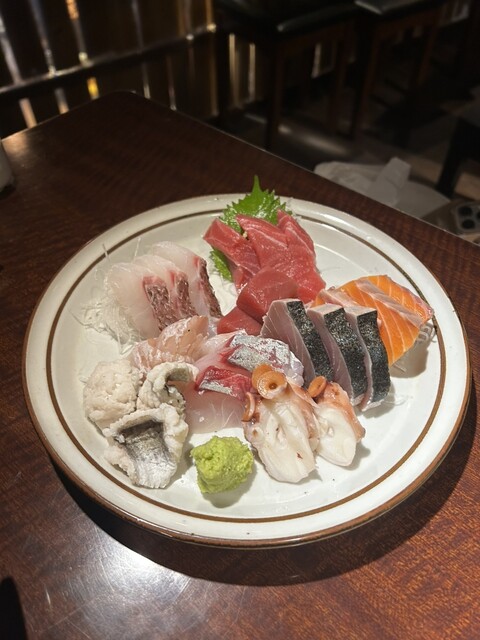 お通しにミニサイズの味噌汁が出てきて、飲んだ瞬間にお寿司屋さんの美味しい味噌汁と感じたので、ここでお刺身を頼まないなんてもったいない‼︎という気持ちになりながら速攻でお刺身をオーダーしました。お刺身が美味しく、大満足。一切れが分厚めで食べ応えがありました。季節に合わせていろいろなお刺身が盛り合わせで来るので楽しみながら食べることができます。
