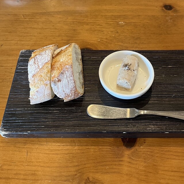 バゲットは自家製の天然酵母を使用しているそう。窯で焼き上げた感じがとても美味しい。結構柔らかめでリエットとも相性抜群。