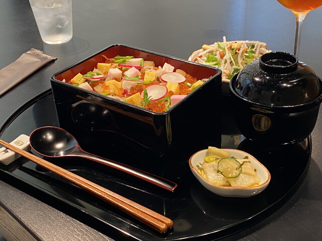 お洒落な店構え。すき焼きちらし重を頂いた。酢飯とすき焼き肉と海鮮の組み合わせが想像出来なかったけど違和感なくそれぞれもハーモニーも大変良く美味しかった。