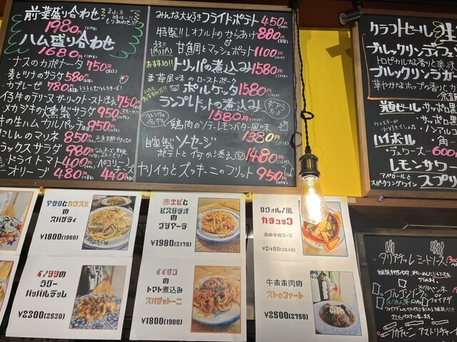 こじんまりとした店内にはお洒落なインテリアと、料理やワインの紹介がずらり。気になったものをいくつか注文。