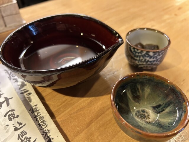 さあ、久しぶりの来訪。蕎麦前は白エビの刺身と穴子の肝、そして会津のこづゆ。こちらは、スタッフの動き、応対ぶりも気持ちよく、お料理も美味しく、ありがたくいただけます。日本酒は福島の銘酒揃いで、飛露喜を出している廣木酒造の地元ブランドの泉川と、これもあまりお目にかかれない弥右衛門のすっぴんを頂きました。