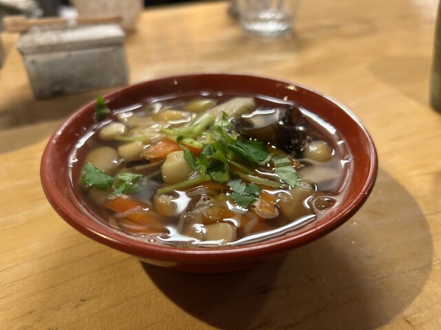 蕎麦前も実に豊富。まずは、刻み茗荷、白エビの唐揚げと蕎麦がき(これはメニューに載っていませんが、お願いすると出してくれます)。蕎麦つゆで頂きますが、お蕎麦好きにはたまらない逸品です。穴子の天ぷらも美味でしたが、福島の郷土料理「こづゆ」は、心も温かくなります。会津のこづゆを味わえる店は少ないですね。他にもそそられるメニューが沢山ありました。