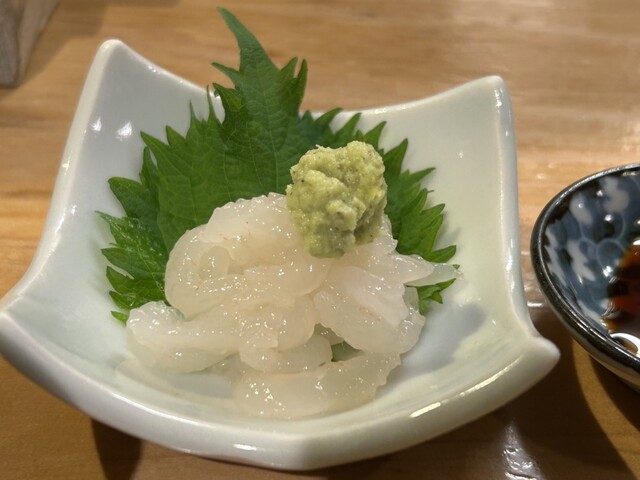 日本酒リストを見て少し驚いたのは「泉川」があった事。これは、会津若松に行った時に頂いたのですが、今やすっかり人気銘柄となった「飛露喜」の醸造元、廣木酒造の地元福島での銘柄名と言う事で普通は地元で流通しますから、東京では珍しいお酒です。お店の方に聞きますと、店長が会津のご出身なんだとか。
