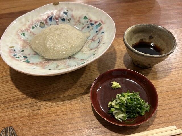 まず蕎麦前はどれも美味しそうで選ぶのに困りました。まずは「前菜三点盛り」1100円で牡蛎と甘エビとにしんでしたが、このにしんがとびきり美味しく、私的には今まで食べたにしんの中で一番おいしいと思えるくらいでした。それから、お店の看板メニューの一つ「鯖の冷燻製」990円、今までにたべたことのない鯖の味でした。それから「干し貝柱と蕎麦粉の磯部揚げ」770円、これがまた美味かった。そして大好きな「蕎麦がき」1650円をいただき、こちらは少し‘おとなしめ’な感じでしたが、蕎麦がきらしい美味しさに満足でした。