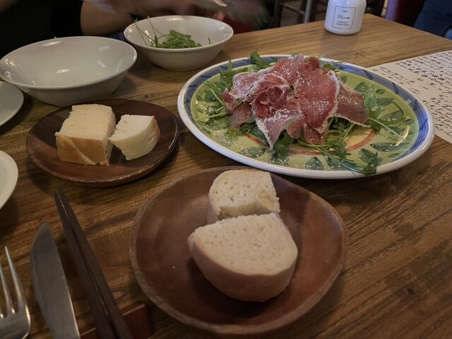 お料理は食べるスピードに合わせて、提供。お水もなくなる前に注いでくれる。なんと!お通しのバケットは食べ放題。
