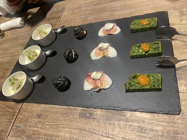 前菜がとにかく印象的で、見た目も味も工夫が凝らされていました。