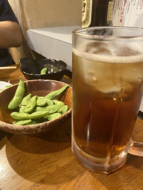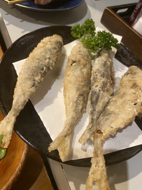 おつまみは、鯵と鰯の刺身、モツ煮、串焼きのレバーとハツ、秋刀魚にお気に入りのゲソ天。