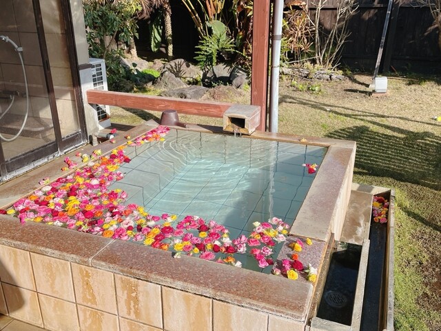 女子会プランで、露天風呂に薔薇の花500個浮かべて。