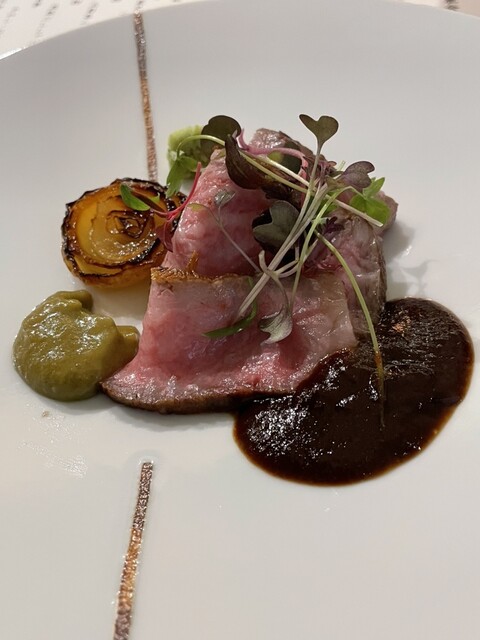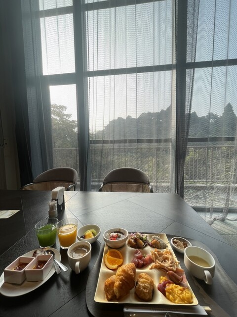 内容は、露天風呂付きのお部屋の時のレストランと比べて、器と雰囲気は違えど、味はどれも美味しい。前菜からお刺身、黒ぶたしゃぶしゃぶまで大満足。デザートも抹茶ムースが濃厚で美味しい。