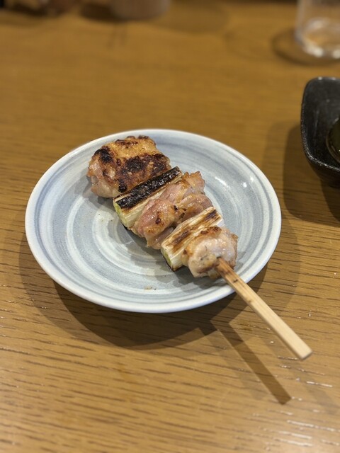 もも とても大ぶりなもも肉、ねぎまになってます。ネギが甘くて美味しい。桃はとてもジューシー、焼き加減は少し強め。