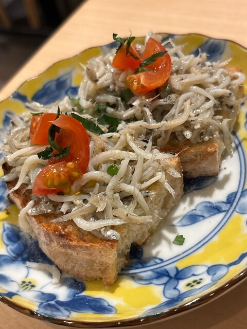 こぼれ落ちるほどたっぷりのシラスがのったブルスケッタ
