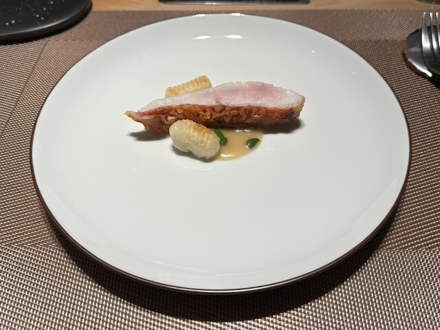 ローストした甘とうがらしのカマ肉とじゃがいもペーストのファルシー