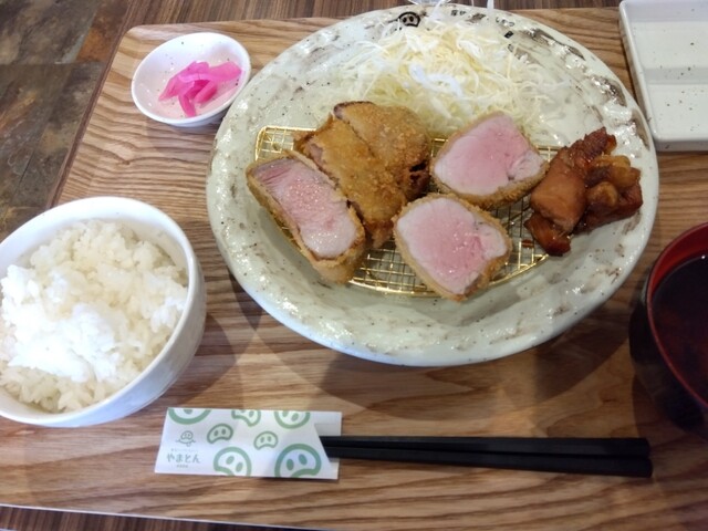 豚肉なのにレアで柔らかくて、牛肉好きだけど満足できるとんかつ。ロースがヒレと比べてジューシー?で、年齢とともにたくさんは食べられない