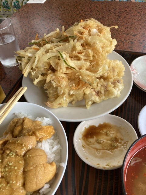 二日連ちゃん ウニ丼とてんこ盛り天麩羅