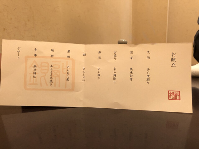 以前旅行の際にはクエが不漁で食べられず、不完全燃焼だったので今回はリベンジ、予約して伺いましたが予定の2週間前にお電話でクエが獲れているか情報も頂き安心できました。