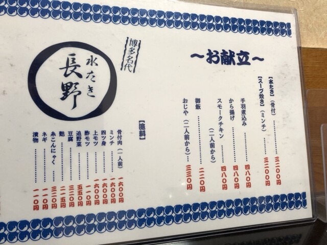 水たき 長野中洲川端、呉服町、天神/水炊き、郷土料理、鳥料理