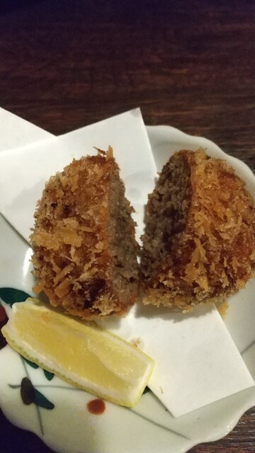肴に秋鱧の南蛮漬け、メンチカツ、落花生豆富の揚げ出しといただく。