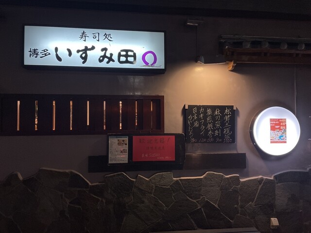 博多駅近くのいずみ田さんにお伺いしました。2回目の訪問ですが、今回は同僚と2人で伺いました。旬の握り8巻と、刺身をいただきました。お鮨は、シャリを小さく握ってあるので、お酒を飲みながら摘むのに、ちょうど良い感じです。サザエの刺身も美味しかったです。