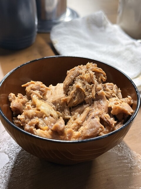 豚は神豚が6個。どれも大きく、脂身が程よくついていて肉感も味染みも最高。めっちゃくちゃ美味かった。ほぐし豚も追加で頼みましたが、こちらはカエシでしっかりつけた感じ。これも美味しかったなあ。