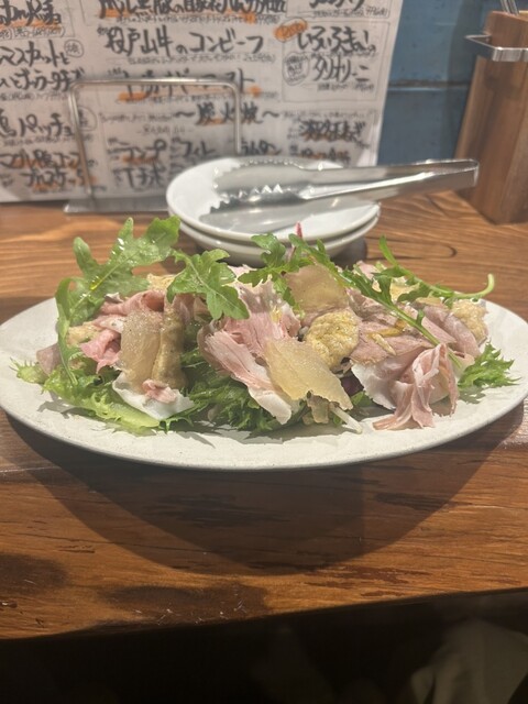 ・アベル黒豚自家製ハムのサラダ仕立て(ロースハムと洋梨のコンポートにトンナートソースがアクセントでめちゃくちゃ美味しい♪)
