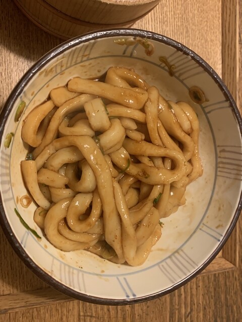 お伊勢さんに初詣に来ました。お昼にはお決まりの奥野屋さんで伊勢うどん。今日は少しお腹が空いていたので、手こねすしと伊勢うどんがセットになっているものを頼みました。熱々もちもちの伊勢うどんが到着。お箸でうどん全体にタレが回るように掻き混ぜてから頂きます。見た目は辛そうに見えるけど、出汁の旨みとみりんの甘味がマッチして美味しい。手こねすしは小ぶりの器に入っていました。カツオのヅケとあの生姜の甘酢漬けと紫蘇をご飯と一緒に頬張ると口一杯に美味しさが広がります。また、次も必ず来ると思います。ご馳走様でした。