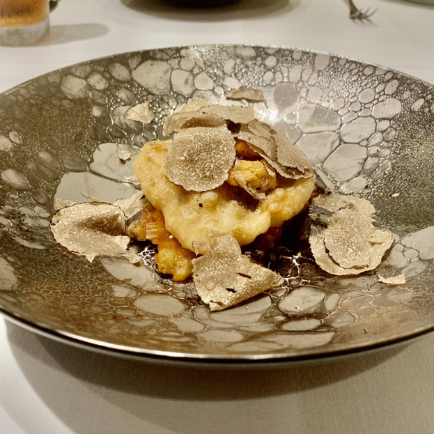 ハモのフリットの上にのってた生うには甘くて、サマートリュフはほんのりと香りがして良い組み合わせ