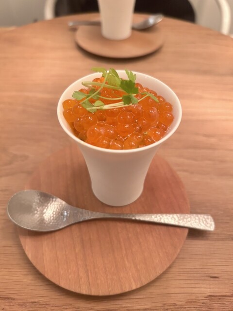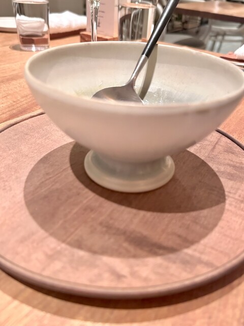 魚介のスープが詰まったソースとじゃがいもを入れてとろみを出していて、よくつけて食べたい。ソテーのイカと添えてた筍もおいしかった