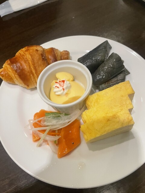 スイーツ(写真失念)はミニサイズ。プリン、ムース、シュークリーム、エクレア、ロールケーキで色々楽しめるサイズ感。パン、クッキーも数種類ずつ。これらはなんと!お店で全て手作りされた物、とお店の方が仰っていました。