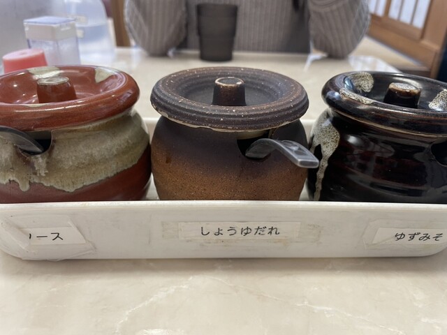 タレはゆず、醤油、ソースの3種。