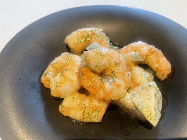 ・海老の塩茹で。超シンプルながらしっとり旨みあり。唸る美味しさ。