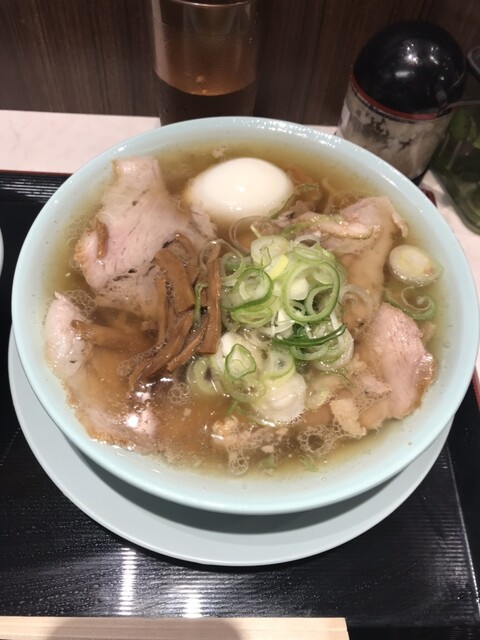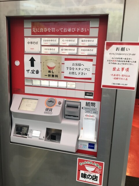 食券売機にて月見中華そば890円を購入!空いている立ち食いスペースが無く、誰かの食べ終わりを待つ状態でした。カウンターに半券を出し待ちます。