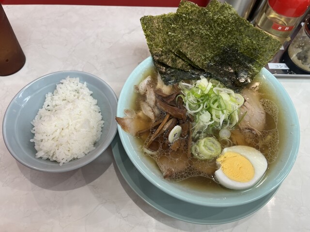 着席してから、5分ほどカウンター越しから中華そばとライス、いただきました。スープはちゃん系特有のラードで覆われた醤油スープ、やはりうまい〜!麺は新宿、達磨製麺の平打ち麺!特中華そばにしたので、半ゆで卵、海苔5枚、メンマ、そしてたくさん入っているチャーシュー!長ネギカットも多め。