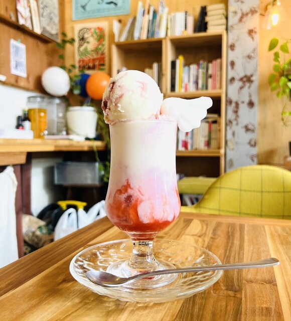 ラブカレーを注文。食後にラブベリーパンケーキと天使の苺ミルクを追加注文。ラブカレーはオーガニックヴィーガンバターを使用したピンク色のルーに甘酸っぱいハート型のビーツ&ケチャップがアクセントになっている。ラブベリーパンケーキはストロベリーチーズパンケーキの上に自家製マスカルポーネ苺アイスと甘酸っぱいベリーソースの相性が良い。天使の苺ミルクは優しい甘さの苺ミルクに天使の羽のデコレーションがカワイイ。