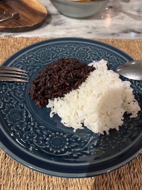 ③マッサマンカレーは2種類のお肉から選べておすすめの頬肉に。ご飯は白米と赤米?が選べてミックスといったら両方よそってくれた。
