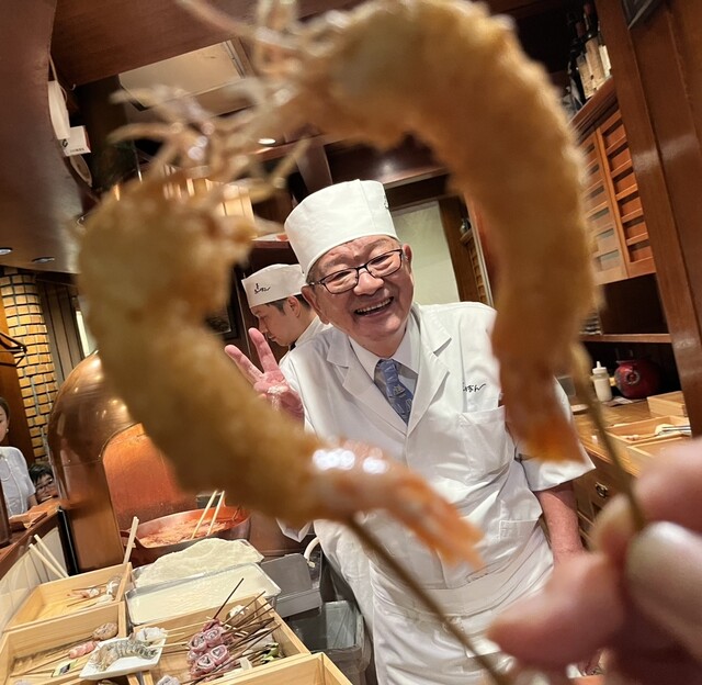 ふわふわ軽い衣とキレのいい油で揚げた食材を最後にくるくるっと油切り「翌日になっても胸焼けしませんよ」と店主。毎日でも伺いたい伝説のお店