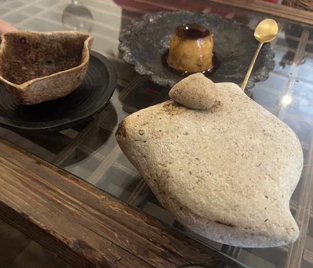 味わい深い器で飲むコーヒーと味わい深いプリンと
