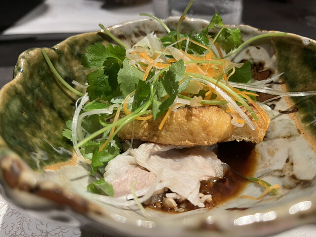 初訪から2ヶ月近く経ちましたので、記憶が定かではないのですが写真を頼りに投稿したいと思います。まず器、九谷をはじめ古伊万里や黄瀬戸の器に肉料理がマッチします。
