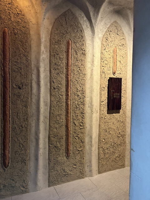 訪問客を包み込むような中世風の壁に沿って数メートル。受付でコートを手渡し、日の差し込むU字型のテーブルの一角に腰掛けました。