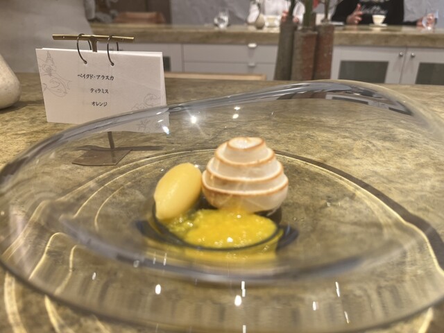 焼いたメレンゲの中からアイスクリーム、ティラミス、コンフィチュールとさくとお口直しになる逸品