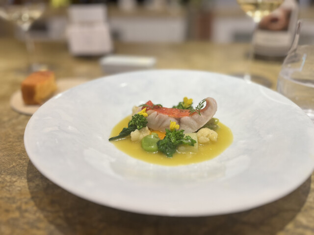 甘鯛はとても美味しく、一つ一つの野菜も味わい深かったです。萌葱色のソースが春でした。
