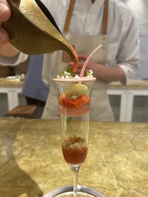 ソムリエ中川さんのチョイスも楽しく、東京ご出身にも関わらず関西のノリに付き合ってくださりますし、シェフは、穏やかな笑顔に向こうに侍のような眼力を感じピシッと背筋が伸びます。このシェフの元、どれだけの時間とどれだけの人の手が…尋ねるとスタッフはシェフ、ソムリエさんを入れて12名