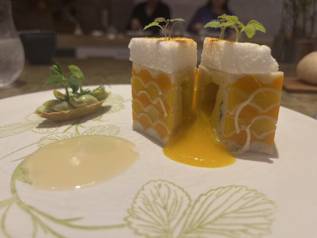 100種類にもなろうかという食材で作る、10数種類の丁寧で研ぎ澄まされたお料理とスイーツ。秋のイメージということでしたが、まさに秋の森の中をシンフォニーが奏でている中を散策する、そんなイマーシブな体験でした。