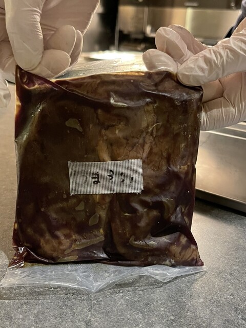 ワイン酵母と昆布だしで鹿肉を3日間くらい漬け込みPSOを入れて15分湯煎したものに、アチャールはレモン果汁とメープルシロップで。サワークリームのソース、