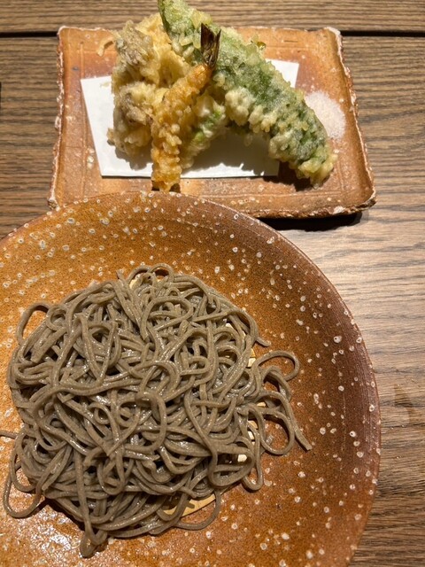 天ぷら蕎麦は、黒い粒の混じった蕎麦にしてこちらは蕎麦の香りがしっかりとして、むちっとした感じ。天ぷらもサクサクで美味しかった。