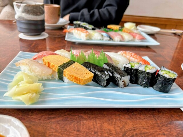 握り寿司(にぎり10勘、巻物1本、小鉢、味噌汁、茶碗蒸し付き 1,870円ナリ。