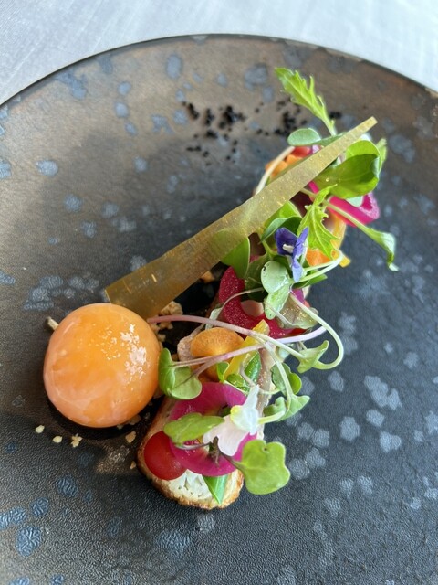 母を連れて記念日ランチに。予約時に高齢の母のことを伝えたら、エントランスからゆっくりの歩幅で案内していただき、一品毎に「量は大丈夫ですか?」とお声掛けもいただき心遣いが有り難かったです。私もフルコースが最後までいけるか心配でしたが、87歳にしてグラスワイン2杯、パン、デザートまで完食でした笑。とても美味しくて、とのこと。エディブルフラワーを使い、見た目も美しく時間をかけて料理を堪能。パンも美味しいので、記念日でなければ軽いコースでも充分満足できると思います。
