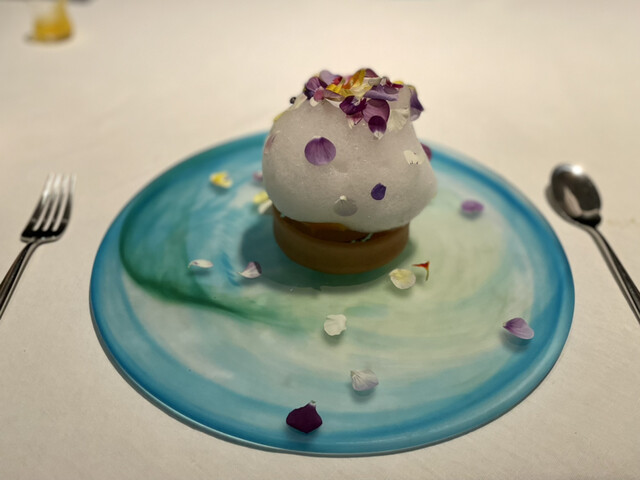 デザートも凝っていて、特に2品目のデザート「マンゴーのトルタ」は泡盛とライムで作った泡が乗った一品。