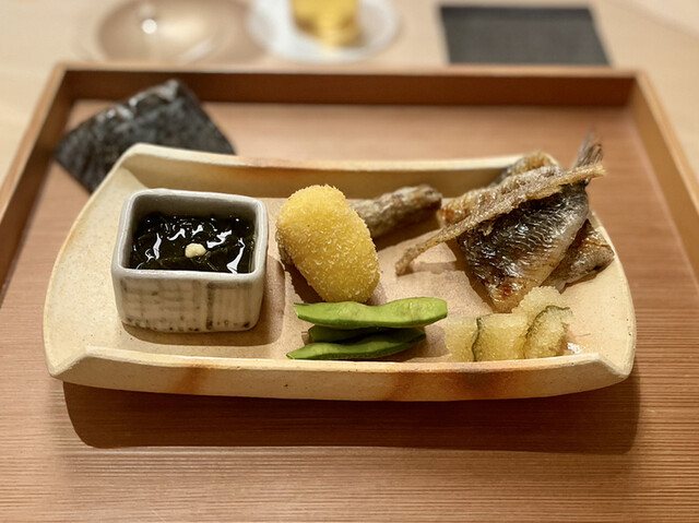 カウンターのみ10席の小さなお店で、お値段は張りますが、まだお若い鼓太郎大将が織りなす数々の逸品を気張らずに楽しめる気さくな日本料理屋です。